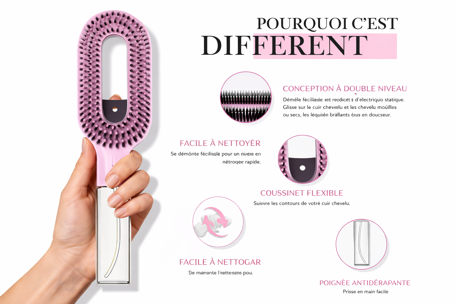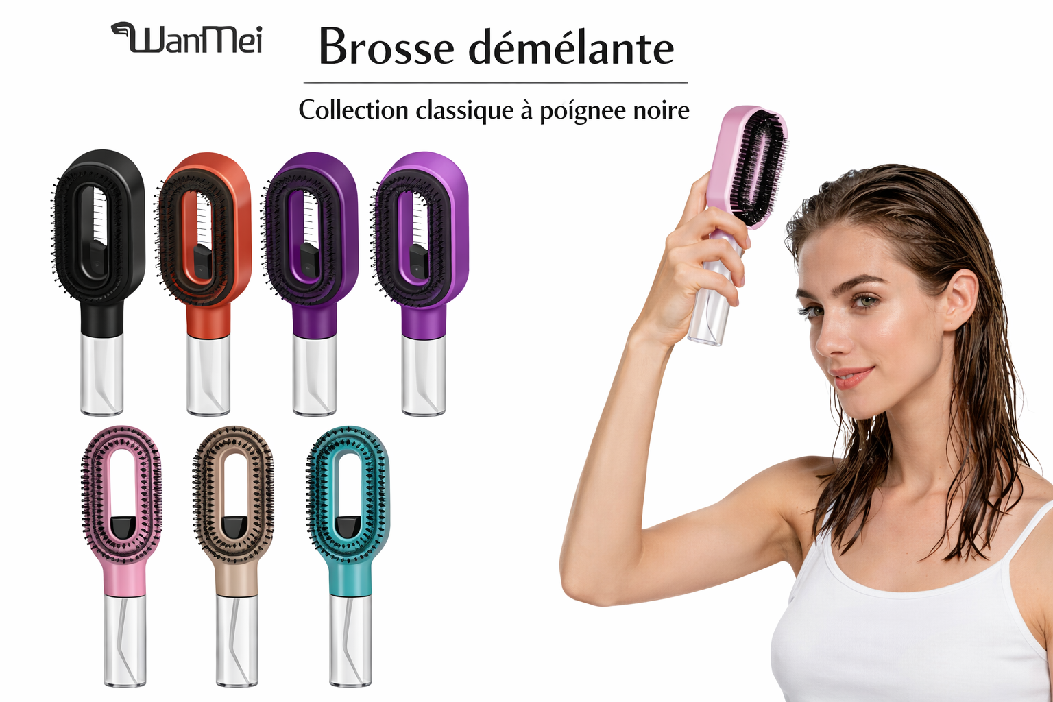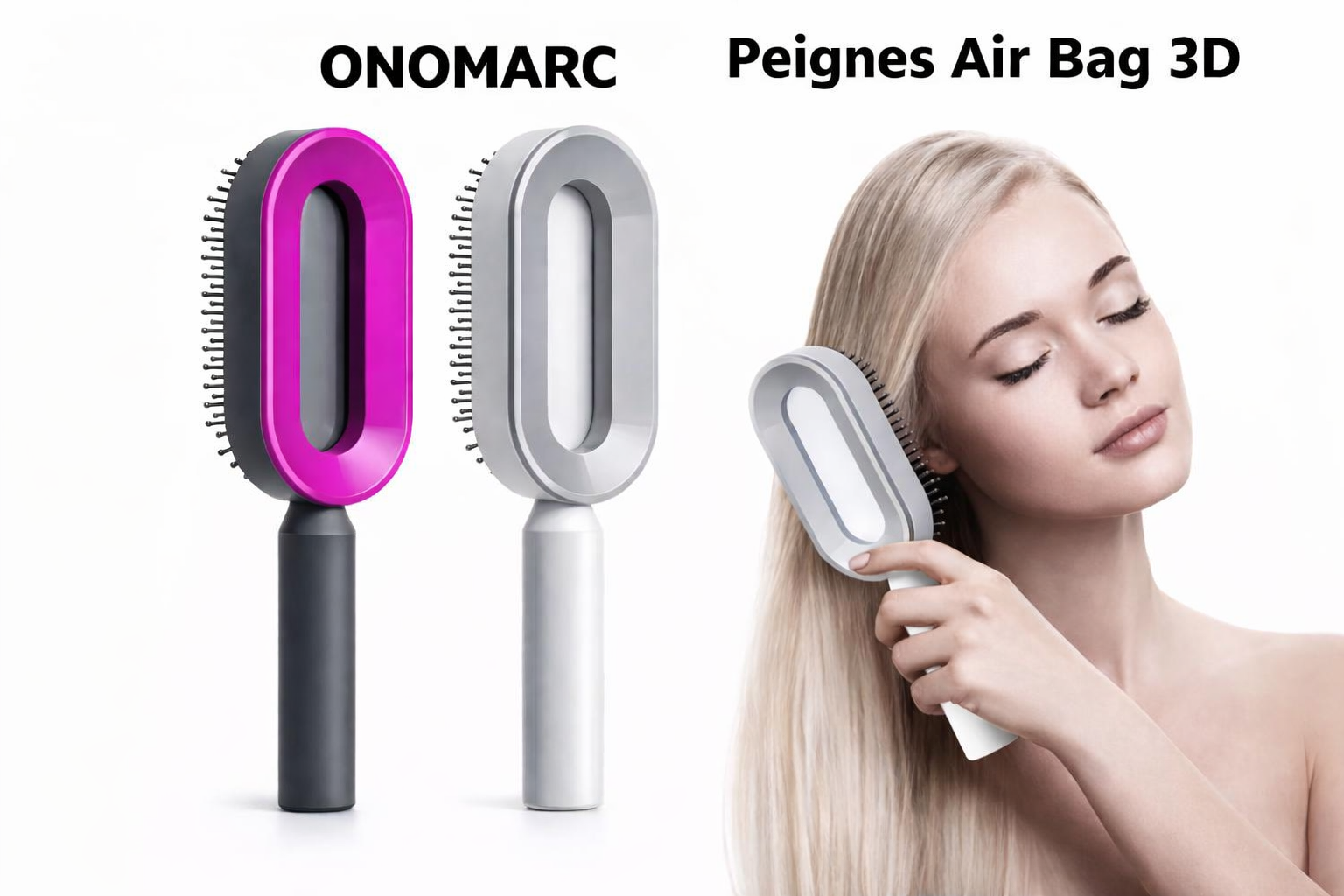 Brosse démêlante autonettoyante à coussin d’air – Effet massage & anti-casse